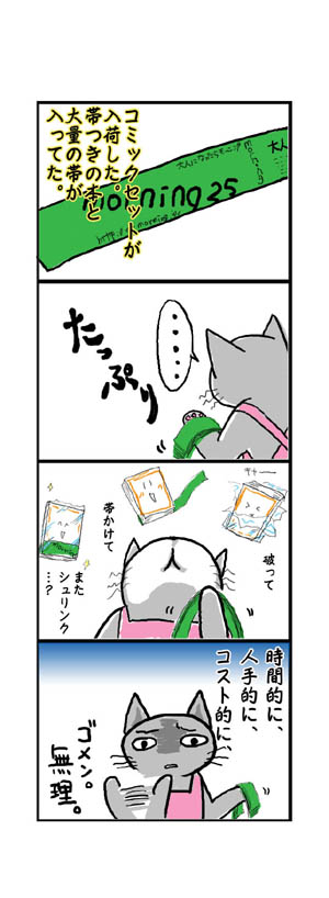 →対象コミックを買った人に不興を買う。(「え~せっかく帯ついてるから買うのに配ってるの~!?」)